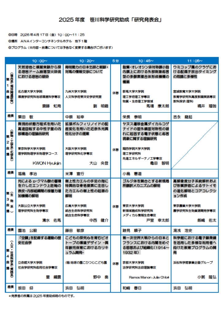 2025年4月18日に笹川科学研究助成「研究発表会・研究奨励の会」を開催しました。
